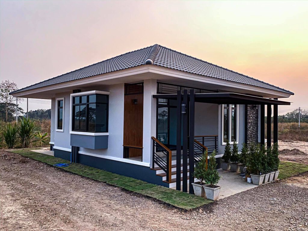 สวัสดีครับแฟนเพจที่รักทุกท่าน วันนี้แอดมินขอนำพาทุกท่านไปชมบ้านสวยๆอีกเช่นเคยครับ สำหรับบ้านหลังงามนี้เป็นบ้านชั้นเดียวสไตล์โมเดิร์น ขนาด 2 ห้องนอน 2 ห้องน้ำ 1 ครัว 1 รับแขก 1 ระเบียงหน้าบ้าน งบประมาณปลูกสร้างรวม 1,180,000 บาท ผลงานออกแบบของ “คุณสุขพล สนธิกุล” ที่ได้กรุณาโพสภาพนำเสนอผลงานบ้านหลังงามให้พวกเราได้ชมกัน พร้อมแล้วเราไปสำรวจรายละเอียดส่วนต่างๆ ของบ้านชั้นเดียวสวยๆ หลังนี้กันเลยครับ